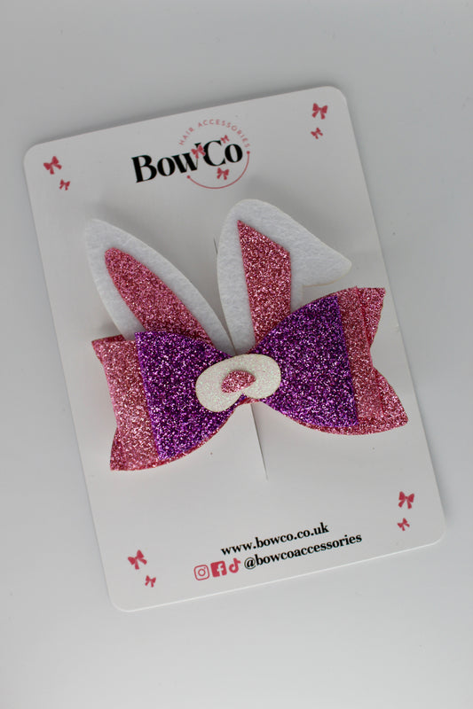Glitter Pink Bunny Tails Hair Bow Clip – 4 Inches
